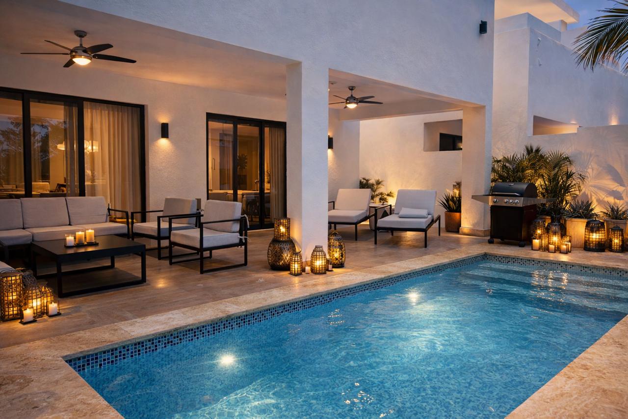 VILLA★RUBI has it all – a modern Villa just steps away from the stunning private Beach of Playa Palmera, located in our gated Resort. Enjoy a private Pool, 3 modern Bedroo...